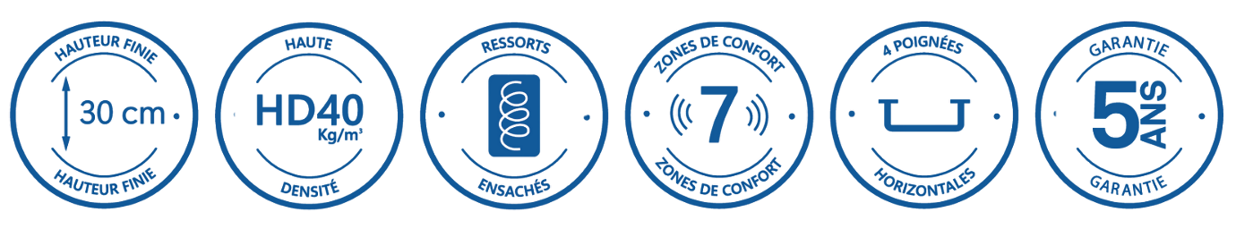 Épaisseur généreuse de 30 cm : garantit un confort haut de gamme et une excellente longévité.